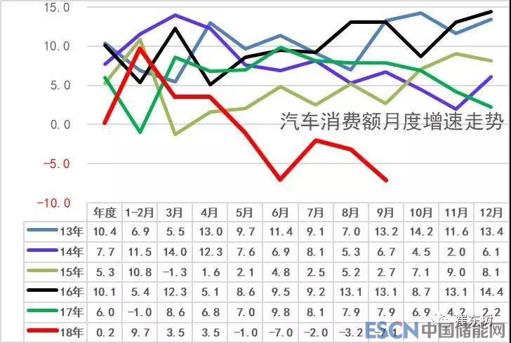 中國儲能網(wǎng)訊:18年1-9月是車市逐步走弱的階段,面對17年底2.5%購置稅優(yōu)惠退出的壓力下,18年1-2月汽車市場消費表現(xiàn)仍較好,但3-9月的高基數(shù)增長壓力較大,5-6月雖有降稅預(yù)期的影響,同時面對樓市超級火爆,車市5月消費增長-1%,6月進(jìn)口車等待觀望,導(dǎo)致增長-7%。7-8月觀望群體購車,但車市零售仍是-2%和-3%。9月車市零售額負(fù)增長達(dá)-7%。車市零售近期的負(fù)增長,中西部樓市惡炒對車市影響較明顯。