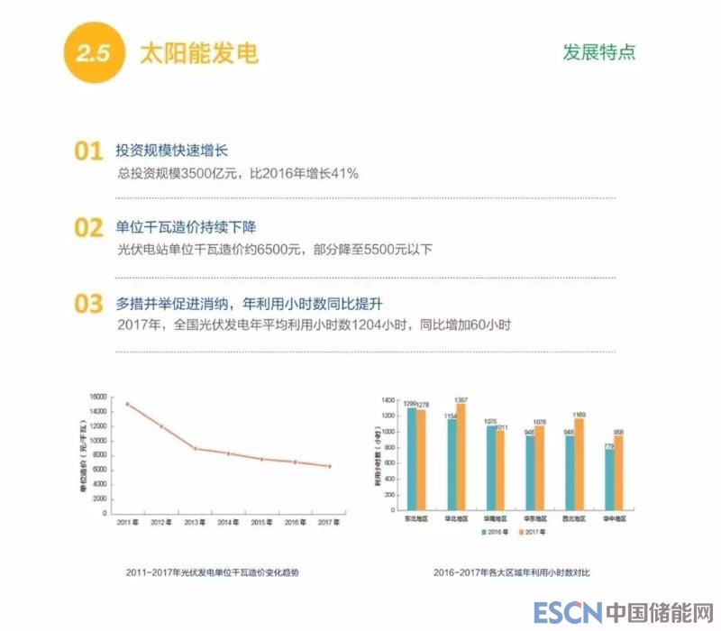 在太陽能發(fā)電方面,去年我國新增裝機5306萬千瓦,目前我國光伏發(fā)電累計裝機已達1.3億千瓦。同時,我國太陽能熱發(fā)電制造產(chǎn)業(yè)鏈也初步形成。2017年太陽光伏發(fā)電投資規(guī)??焖僭鲩L,比2016年增長了41%,同時單位千瓦造價部分已經(jīng)降低至每千瓦5500元以下,棄光的現(xiàn)象也得到了有效控制。