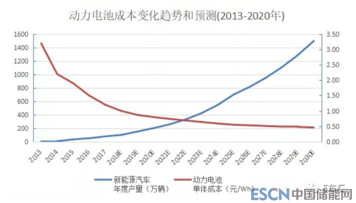在國(guó)務(wù)院發(fā)展研究中心產(chǎn)業(yè)經(jīng)濟(jì)研究部、中國(guó)汽車工程學(xué)會(huì)和大眾汽車集團(tuán)(中國(guó))聯(lián)合編著的《2018年中國(guó)汽車產(chǎn)業(yè)發(fā)展報(bào)告》中,對(duì)動(dòng)力電池成本的預(yù)計(jì)是到2018年底,電池成本為1元/Wh,到2025年,電池成本為0.55元/Wh。這與當(dāng)前的電池成本相比,幾乎是降低了三分之二,電動(dòng)汽車的終端售價(jià)也會(huì)相應(yīng)降低。