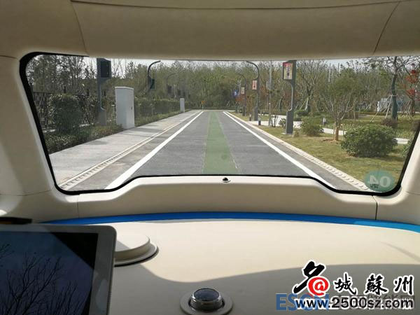 走進(jìn)車內(nèi),看不到方向盤,也沒有油門剎車,只有一個平板電腦顯示器。旁邊的工作人員介紹,他們在平板上啟動程序后,汽車按照設(shè)定好的路線行使。時速約10-20公里/小時,如果前面有障礙物,車輛還會自動避障。