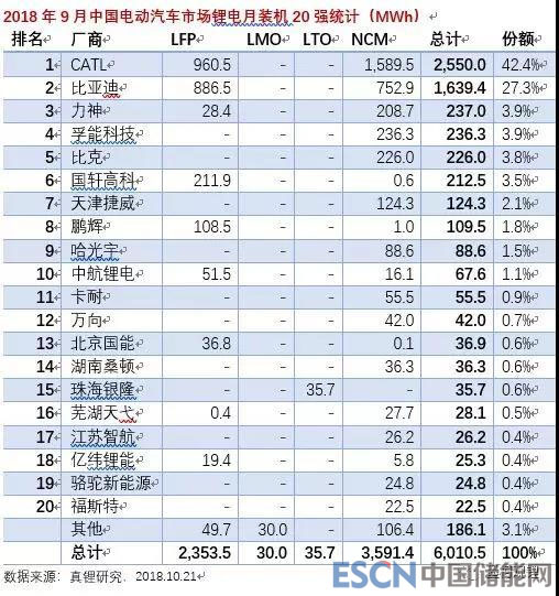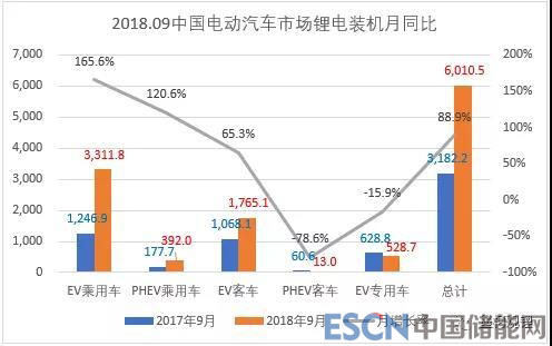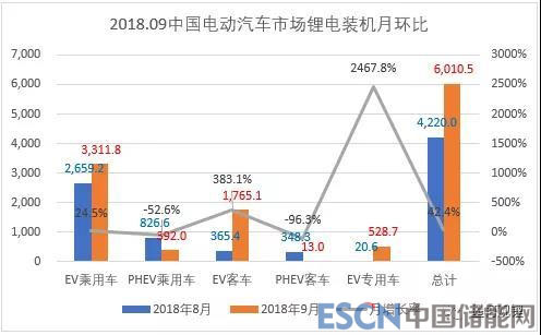 1、2018年9月鋰電裝機(jī)6.01GWh,同比大增88.9%,環(huán)比大增42.4%