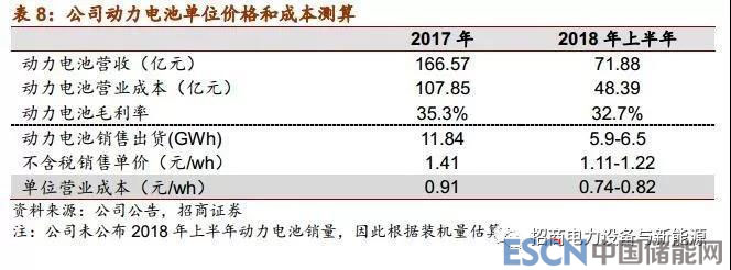 銷量方面,公司中報(bào)披露庫(kù)存商品和發(fā)出商品分別為10.5和22.4億元,按照我們預(yù)計(jì)的上半年平均不含稅單價(jià)(1.1-1.2元/wh)折算的庫(kù)存和發(fā)出商品合計(jì)約2.7-3GWh,預(yù)計(jì)這部分銷售確認(rèn)在Q3。