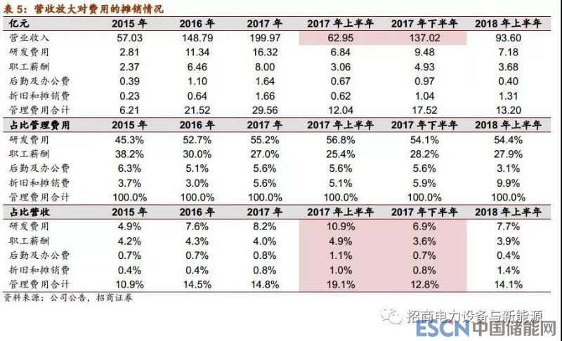 2.成本控制力強(qiáng),收入放量攤薄費(fèi)用顯著提升盈利水平:2017年,公司上、下半年毛利率分別37.5%、35.7%,三費(fèi)率分別為24.2%、16.6%,下半年毛利率有所下滑,但收入放大后管理費(fèi)用率顯著攤薄下滑6.3個(gè)百分點(diǎn)至12.8%(其中研發(fā)費(fèi)用約16億,占比管理費(fèi)用約54%,分拆到上下半年,研發(fā)費(fèi)用分別為6.8和9.2億元),因此2017年上下半年扣非凈利潤(rùn)率分別為8.1%和13.6%。我們判斷,季節(jié)特點(diǎn)造成的費(fèi)用率擾動(dòng),以及對(duì)盈利能力的類似影響在今年仍有體現(xiàn),上半年公司凈利潤(rùn)率7.x%,下半年可能回升到10-11%。