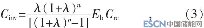 式中:Eb為儲(chǔ)能電池容量;Cre為單位儲(chǔ)能容量成本;n為設(shè)備的使用年限;λ為年利率。
