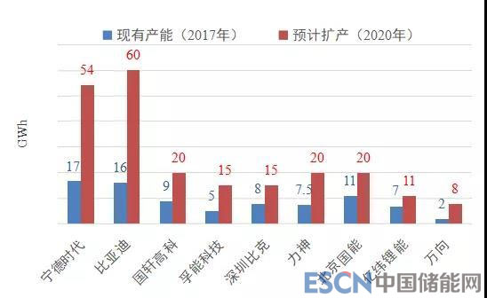 國內(nèi)主流動力電池企業(yè)的擴產(chǎn)計劃