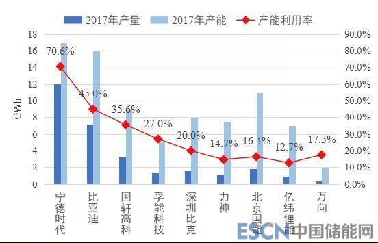 國內(nèi)主流動力電池企業(yè)產(chǎn)能利用率