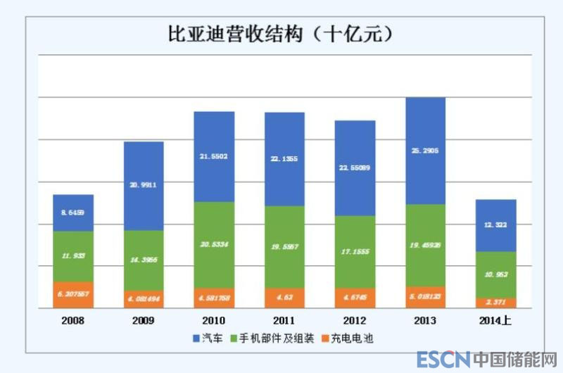 2009年開始,比亞迪業(yè)績結(jié)構(gòu)趨于穩(wěn)定,汽車、手機(jī)、電池座次排定,甚至各部分營收都幾乎沒有變化。
