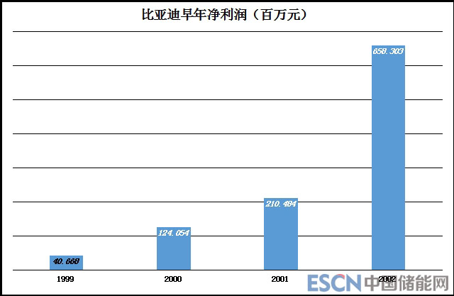 由于鋰離子電池附加量更高,比亞迪效益全面改觀,2002年毛利潤率、凈利潤率分別達(dá)到41.7%和28.7%,成為勞動(dòng)密集型企業(yè)中的“奇葩”。適逢手機(jī)產(chǎn)業(yè)大爆發(fā),鋰離子電池需求“井噴”,比亞迪崛起有運(yùn)氣的成份。但是能拿到40%以上的毛利潤率,說明比亞迪在電池在技術(shù)方面“有一套”。