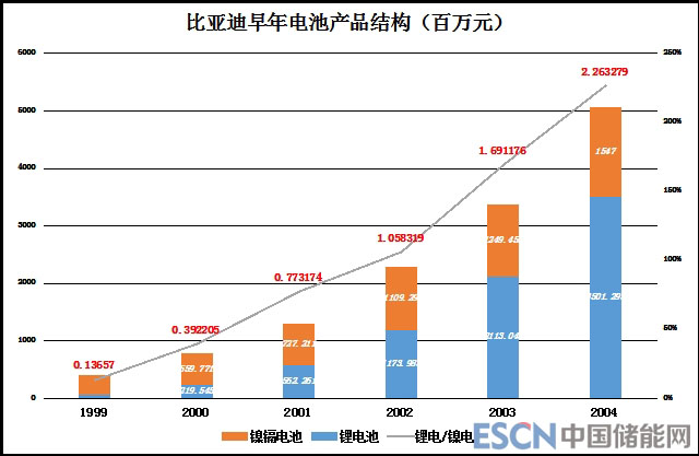 2002年7月,比亞迪在香港主板上市(代碼01211.HK),募集資金16億港元。上市后,鋰離子電池出貨量把鎳鎘電池遠(yuǎn)遠(yuǎn)拋在后面,1999年鋰離子電池銷售額僅為鎳鎘電池的14%,2004年達(dá)到226%。