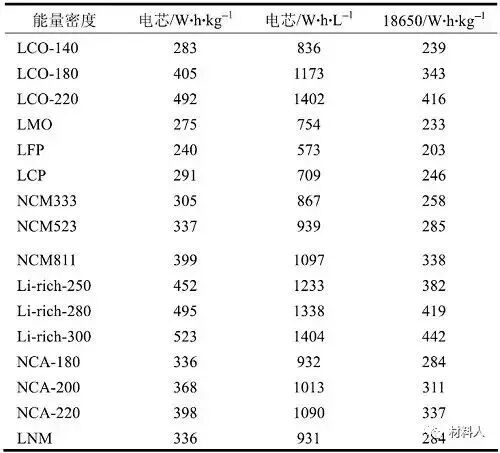 正負(fù)極材料決定了電池能量密度,但是大部分文獻(xiàn)計(jì)算能量密度時(shí)都是基于單一的活性正極材料質(zhì)量,部分文獻(xiàn)考慮正負(fù)極材料的活性材料質(zhì)量之和,忽略了非活性電池材料的質(zhì)量,使得計(jì)算結(jié)果與實(shí)際偏差較大。