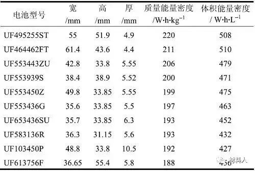 考慮上連接的極耳和封裝材料,可以計(jì)算單體電池的能量密度。表4、5給出松下NCR18650圓柱電池和Prismatic系列軟包方形單體電池的性能參數(shù)[6]。
