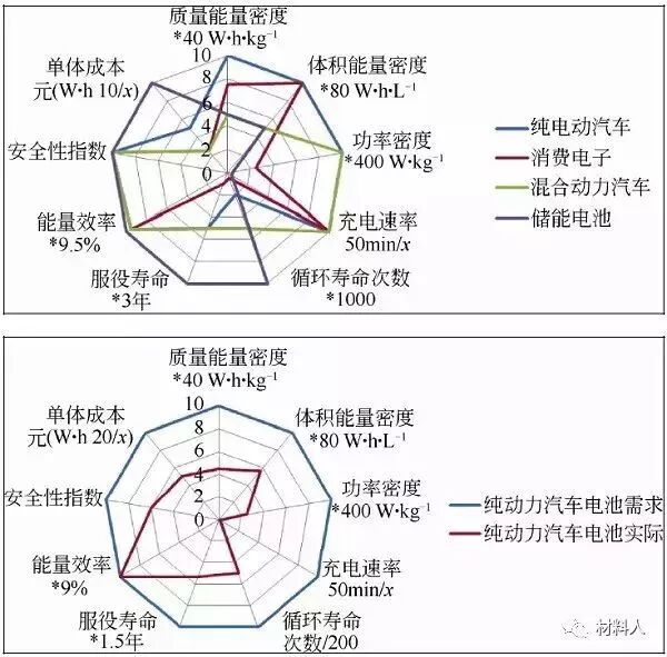 電池的應(yīng)用不僅需要能量密度,還需功率密度、充電速率、循環(huán)壽命、服役年限、能量效率、安全性指數(shù)、單體電池成本等其他技術(shù)指標(biāo),電池能否應(yīng)用取決于某項(xiàng)技術(shù)指標(biāo)能否滿足應(yīng)用的最低要求,稱之為電池的“木桶效應(yīng)”。