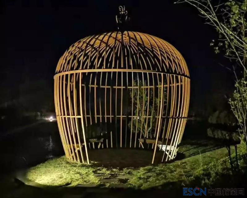 當(dāng)天晚上,該項(xiàng)目啟動(dòng)了離網(wǎng)系統(tǒng)投運(yùn)亮燈儀式。白天CIGS薄膜光伏發(fā)電后存儲(chǔ)在梯次利用動(dòng)力電池中,晚上亮燈時(shí),儲(chǔ)能系統(tǒng)中的電釋放出來,草帽論壇、海棠左岸等富有當(dāng)?shù)靥厣慕ㄖ来吸c(diǎn)亮。至此,一場(chǎng)以可再生能源、儲(chǔ)能、能源管理系統(tǒng)為核心應(yīng)用的鄉(xiāng)村能源的升級(jí)和變革正在拉開序幕。