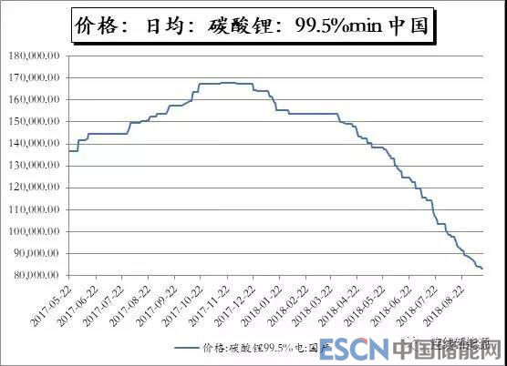 近一年來鋰電池上游核心原材料的價(jià)格下跌明顯。