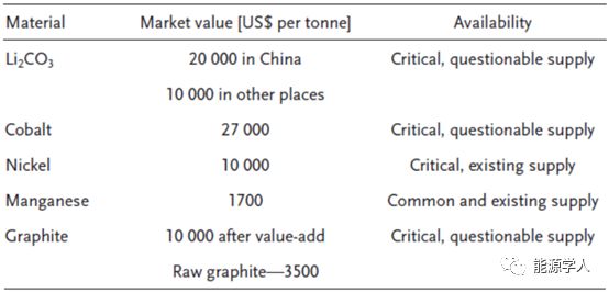 Table1. 特斯拉公司報導的鋰電池原材料價格.