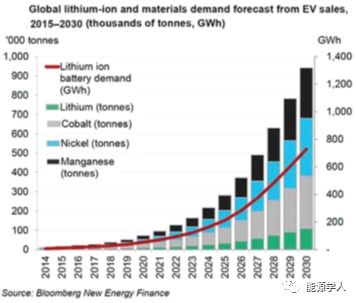 從全球電動車銷售情況預測出的鋰電池及其相關材料需求.
