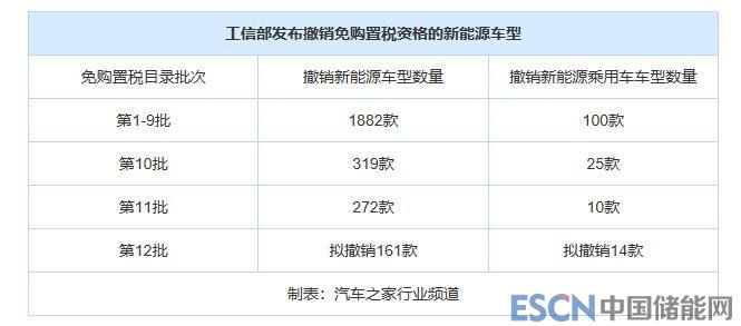 中國儲能網(wǎng)訊:10月25日,工信部發(fā)布《關(guān)于擬撤銷<免征車輛購置稅的新能源汽車車型目錄>名單的公示》,就161新能源車從免征購置稅目錄撤銷征求意見,其中包含奇瑞eQ1(型號SQR7000BEVJ722)、帝豪GSe(參數(shù)|詢價(jià))400(型號HQ7002BEV17)、帝豪EV(型號HQ7002BEV20、HQ7002BEV21、HQ7002BEV10、MR7002BEV08、MR7002BEV13、MR7002BEV14)、比亞迪宋EV(型號BYD6460SBEV3)、北汽ET400(型號BJ7001U5E1-BEV)、EC180(型號CH7000BEVH2CB)、東風(fēng)風(fēng)神E70(型號DFM7000G1F4BEV)、北斗星E(型號CH5015XYZBEVA2CA)等共14款新能源乘用車產(chǎn)品。