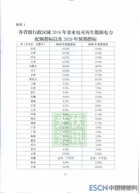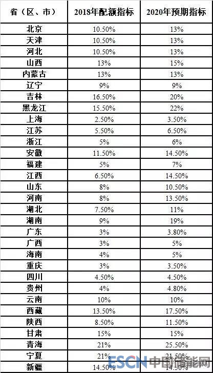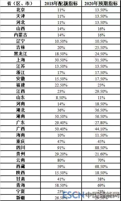 第一輪征求意見各省級行政區(qū)域2018年非水電可再生能源電力配額指標