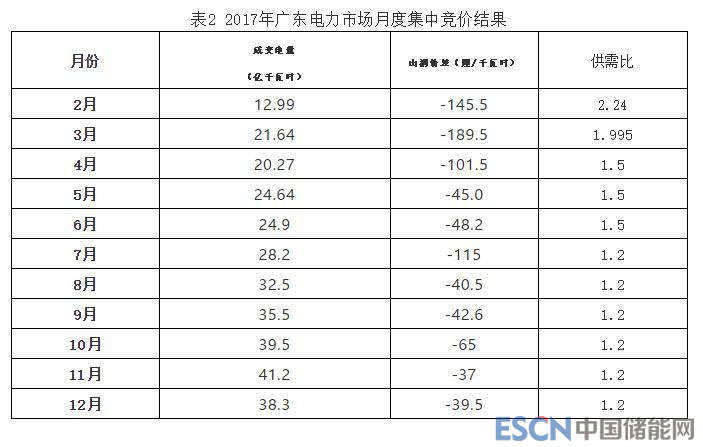 表2和圖1給出了2017年廣東電力市場月度集中競爭市場的結(jié)果。