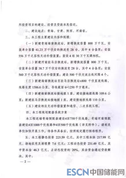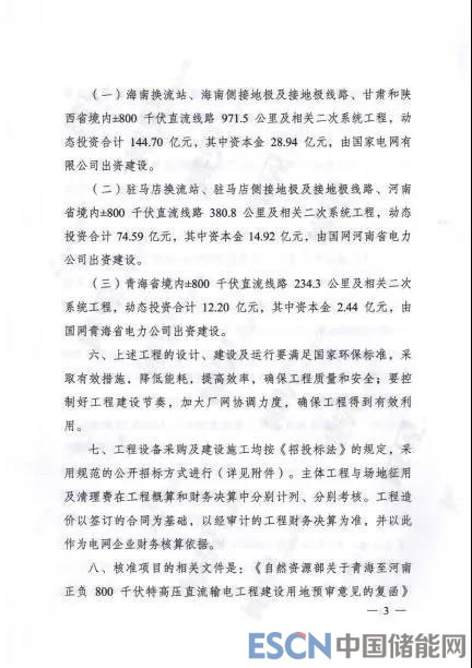 (三)新建海南換流站至駐馬店換流站士800千伏直流線路,線路長(zhǎng)度1586.6公里,導(dǎo)線截面6X1250平方毫米。