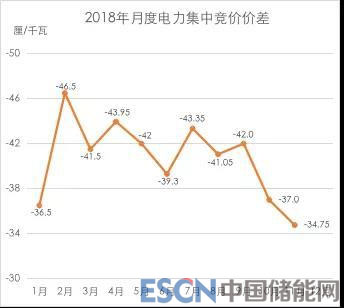2018年1-11月的月度集中競價價差逐步收窄,直至本月,價格跌破歷史三年廣東電力月度集中競價的最低價差,出清價差-34.75厘/千瓦時。