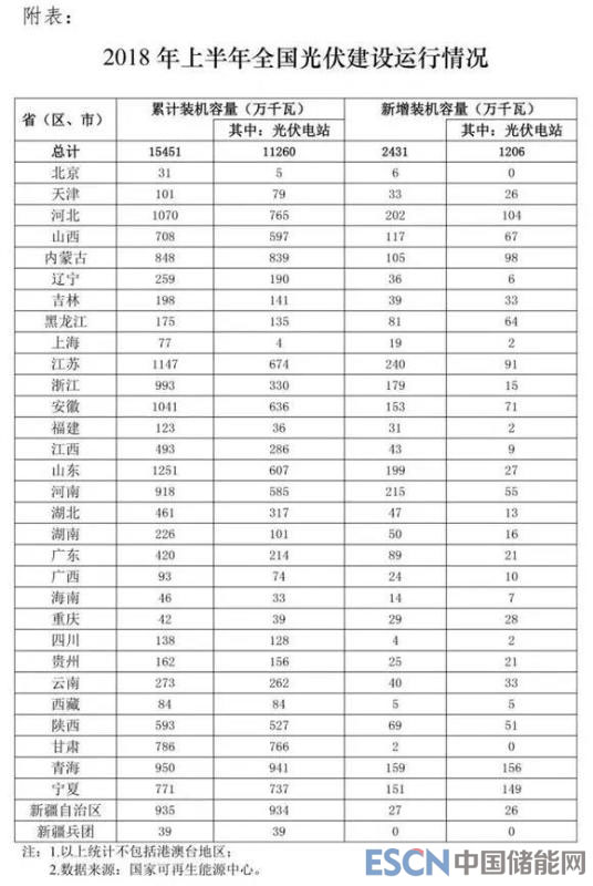 從新增裝機(jī)布局看,華北地區(qū)新增裝機(jī)611.6萬千瓦,同比增長47%,占全國的25.2%;東北地區(qū)新增裝機(jī)206.4萬千瓦,同比下降4%,占全國的8.5%;華東地區(qū)新增裝機(jī)621.8萬千瓦,同比下降25%,占全國的25.6%;華中地區(qū)新增裝機(jī)387.8萬千瓦,同比下降8%,占全國的15.9%;西北地區(qū)新增裝機(jī)412萬千瓦,同比下降1%,占全國的17.0%;華南地區(qū)新增裝機(jī)191.8萬千瓦,同比增長33%,占全國的7.9%。分布式光伏發(fā)展繼續(xù)保持較快速增長,2018年上半年山東、浙江、河南、江蘇四省新增裝機(jī)均超過100萬千瓦,四省分布式光伏新增裝機(jī)占全國的52.6%。
