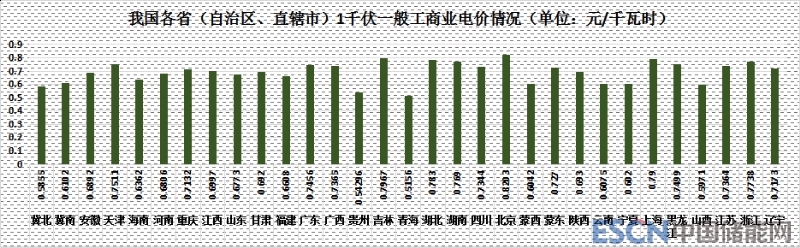 從目前各地執(zhí)行的一般工商業(yè)電價(jià)上看,區(qū)域電價(jià)差依然相對(duì)較高,北京、吉林、上海依然是我國(guó)一般工商業(yè)電價(jià)最高的地區(qū),山西、冀北、青海相對(duì)較低。以不滿1千千伏一般工商業(yè)電價(jià)為例,北京、吉林、上海分別達(dá)到0.8203元/千瓦時(shí)、0.7967元/千瓦時(shí)、0.79元/千瓦時(shí);而山西、冀北、青海則僅為0.5971元/千瓦時(shí)、0.5851元/千瓦時(shí)、0.5156元/千瓦時(shí)。