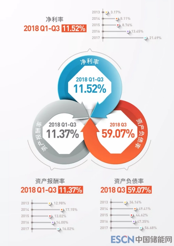 2018年前三季度,隆基實(shí)現(xiàn)營(yíng)業(yè)收入146.71億元,同比增長(zhǎng)35.26%;歸屬于母公司的凈利潤(rùn)16.91億。可以看出隆基股份營(yíng)業(yè)收入穩(wěn)步提升,凈利潤(rùn)一直保持在較好水平,體現(xiàn)了穩(wěn)健的經(jīng)營(yíng)能力。另外,截至第三季度,隆基總資產(chǎn)升至388.35億;經(jīng)營(yíng)現(xiàn)金流10.61億,同比增加48.78%;資產(chǎn)負(fù)債率59.07%,繼續(xù)保持在行業(yè)合理水平,體現(xiàn)出較強(qiáng)的抗風(fēng)險(xiǎn)能力。