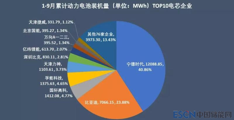 前9個(gè)月累計(jì)有22家企業(yè)年度裝機(jī)量超過100MWh,合計(jì)總裝機(jī)27.81GWh,占同期裝機(jī)總量的92.9%,僅寧德時(shí)代與比亞迪兩家就合計(jì)拿下64.7%的市場份額,寡頭形象已現(xiàn),其他企業(yè)的競爭壓力劇增。