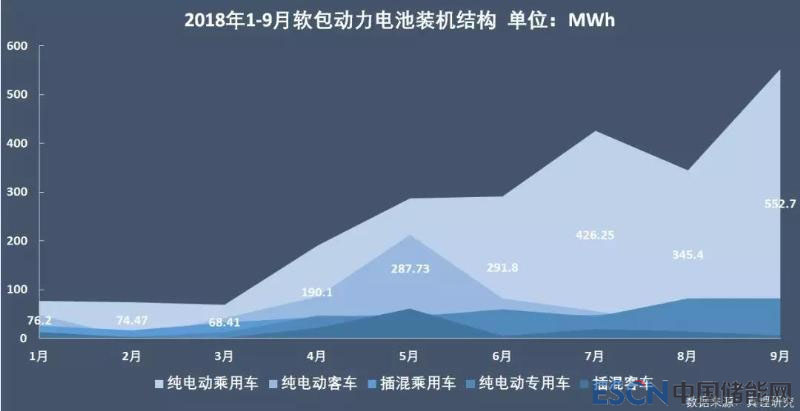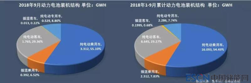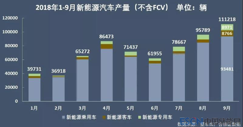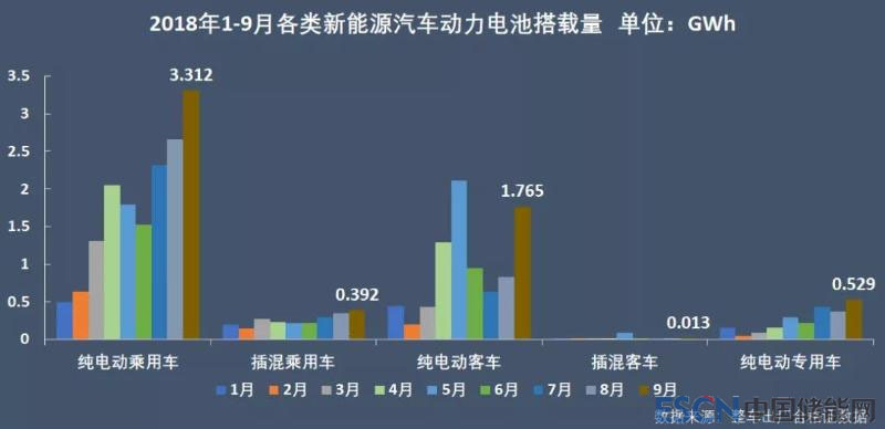今年前9個(gè)月累計(jì),新能源乘用車電池裝機(jī)18.41GWh,同比增長136.87%,且已超過去年全年乘用車的電池裝機(jī)總量(13.65GWh);新能源客車?yán)塾?jì)電池裝機(jī)8.84GWh,同比增長91.76%;純電動(dòng)專用車?yán)塾?jì)電池裝機(jī)2.29GWh,與去年同期相比基本持平,僅微增0.44%。