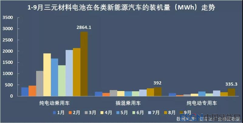 不過,同期累計(jì)相比,去年前9個(gè)月三元材料電池的裝機(jī)比重僅為49.52%,今年三元材料電池裝機(jī)量的高比重系商用車市場總體不景氣、磷酸鐵鋰電池大戶純電動(dòng)客車的產(chǎn)量一直低迷所致。