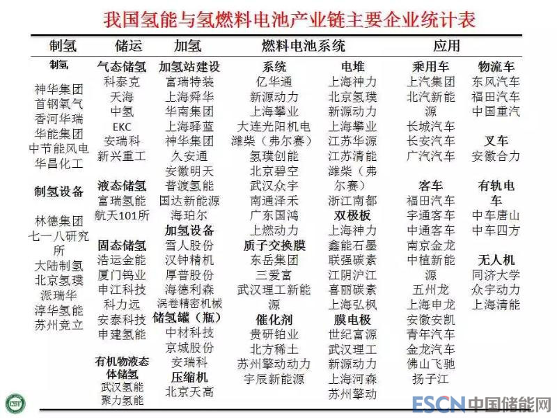 中國儲能網(wǎng)訊:近年來,氫能與燃料電池的發(fā)展受到各國關(guān)注,氫能源產(chǎn)業(yè)鏈包括上游制氫產(chǎn)氫、氫氣儲存運輸、加 氫站運營、中游燃料電池系統(tǒng)及零部件生產(chǎn)制造、下游氫燃料電池應(yīng)用等眾多環(huán)節(jié)。各環(huán)節(jié)有哪些企業(yè)呢,請參考如下報告。