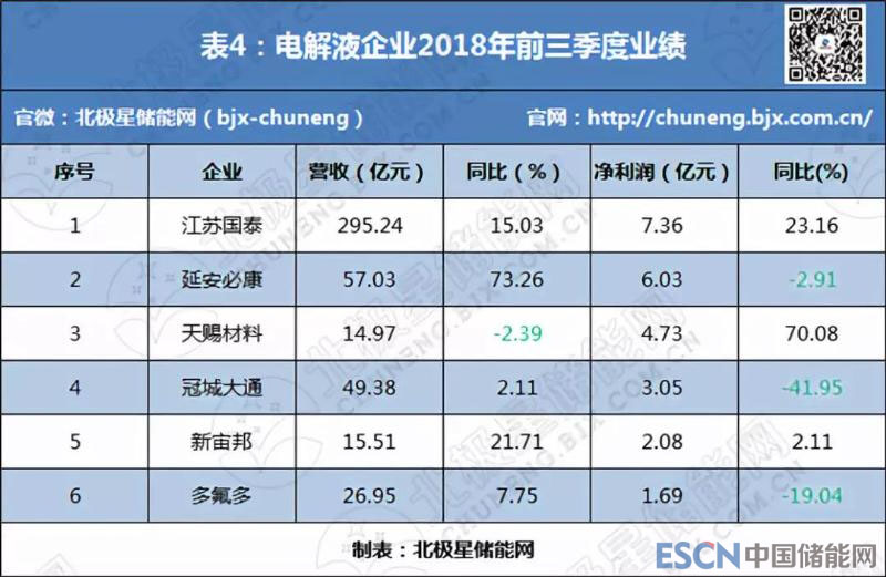 前三季度,電解液企業(yè)業(yè)績(jī)普遍飄紅,但除江蘇國(guó)泰、天賜材料和新宙邦外,其他企業(yè)凈利潤(rùn)出現(xiàn)下滑(詳見(jiàn)表4)。此外,天賜材料凈利潤(rùn)增長(zhǎng)主要由于參股子公司容匯鋰業(yè)會(huì)計(jì)核算方法變更以及處置其股權(quán)導(dǎo)致投資收益增加所致,一旦扣除這一因素影響后,天賜材料凈利潤(rùn)將同比下降92.25%。因此,受價(jià)格下滑影響,電解液企業(yè)盈利能力也普遍下降。