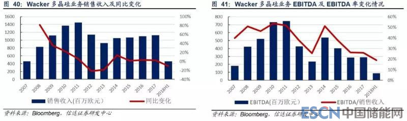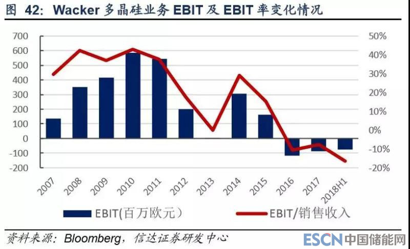 從業(yè)績來看,瓦克近年來多晶硅營收相對穩(wěn)定,但利潤水平下滑幅度明顯。其息稅折舊攤銷前凈利潤/營收從 2014 年的 50% 下降至 2018 年上半年的不足 20%,2016 年以來息稅前利潤均為負(fù)值。我們認(rèn)為,瓦克在德國的多晶硅產(chǎn)能投產(chǎn)較早,成本 方面存在一定劣勢;同時(shí)其美國產(chǎn)能仍有一定的不穩(wěn)定性,2017 年就因技術(shù)缺陷發(fā)生氫氣爆炸,影響了約 0.6 萬噸多晶硅生 產(chǎn),加之我國對美多晶硅“雙反”貿(mào)易關(guān)稅較高,我們認(rèn)為瓦克在國內(nèi)市占率有下滑預(yù)期。