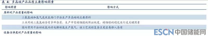 而在品質(zhì)方面,隨著單晶市占率快速提升以及 N 型電池發(fā)展,下游市場對多晶硅品質(zhì)要求越來越高。從技術(shù)上來看,多晶硅 產(chǎn)品質(zhì)量受原料、設(shè)備潔凈度和工藝方法等多種因素影響。原料方面,由于目前多晶硅生產(chǎn)主要采用氫氣還原三氯氫硅的改 良西門子法生產(chǎn),因而三氯氫硅和氫氣的純度和質(zhì)量直接影響多晶硅質(zhì)量。生產(chǎn)設(shè)備中的油污、氧化物或粉塵的摻入也將嚴(yán) 重影響多晶硅的晶型,生產(chǎn)工藝中反應(yīng)物的配比、溫度的控制也將對產(chǎn)品品質(zhì)產(chǎn)生較大影響。