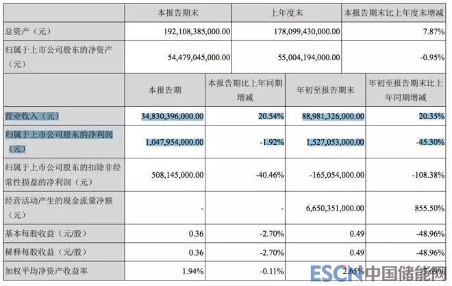 中國儲能網(wǎng)訊:10月30日比亞迪發(fā)布2018年第三季度財報,財報顯示其凈利潤同比下滑45.3%,扣非凈利潤同比下滑108.38%。雖然對比中期財報和一季度財報來看扣非凈利潤的下滑幅度有所收窄,然而整體來看依然處于虧損。