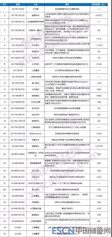 本文匯總了2017~2018年中國(guó)氫燃料電池產(chǎn)業(yè)鏈的相關(guān)投資,累計(jì)投資金額2193.16億元。其中氫燃料電池汽車(chē)相關(guān)投資額,約有1052億元,占總投資額的一半。