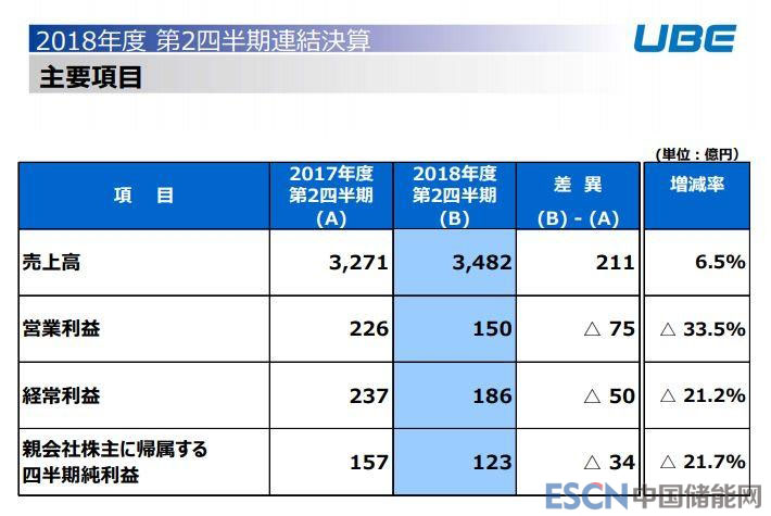 由圖可知,宇部興產(chǎn)的銷售額較去年同期上升了6.5%,但是營(yíng)業(yè)利潤(rùn)下降了33.5%,凈利潤(rùn)下降了21.7%。