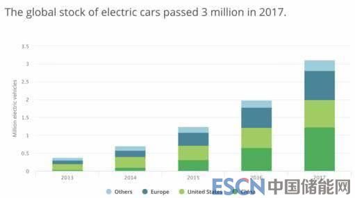 根據(jù)《2018全球電動(dòng)汽車展望》報(bào)告顯示,到2017年為止,全球電動(dòng)汽車保有量(包括純電動(dòng)汽車和插電式混合動(dòng)力汽車)超過300萬輛,相比2016年增長(zhǎng)了57%,打破歷史記錄。
