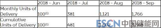 根據(jù)財(cái)報(bào)內(nèi)容,公司截止9月30日共交付ES8(一款高性能7座SUV)3368輛,其中單9月份ES8的交付量就達(dá)到1766輛,比上月上漲了58%。公司2018年6-9月的交付量分別為100輛、381輛、1121輛和1766輛。
