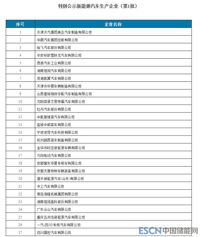 附件:特別公示新能源汽車生產(chǎn)企業(yè)(第1批)