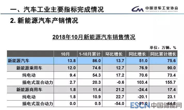 10月新能源汽車銷售13.79萬輛,同比增長51.01%。前十月新能源汽車?yán)塾嬩N售86.01萬輛,比去年同期增長75.59%。其中純電動銷售65.26萬輛,同比增長62.69%;插電式混合動力銷售20.73萬輛,同比增長136.42%。