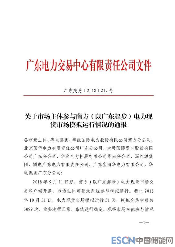 中國儲能網(wǎng)訊:2018年9月11月起,南方(以廣東起步)電力現(xiàn)貨市場交易客戶端開通,市場主體可登陸系統(tǒng)參與模擬運行。截止2018年10月31日,電力現(xiàn)貨市場模擬運行51天,現(xiàn)將市場主體參與情況及后續(xù)工作要求通報如下: