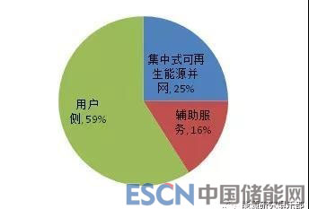 從我國新增投運的電化學儲能項目的應(yīng)用分布上看,2017年,用戶側(cè)領(lǐng)域的新增裝機規(guī)模所占比重最大,為59%,其次是集中式可再生能源并網(wǎng)領(lǐng)域,所占比重接近25%,排在第三位的是輔助服務(wù)領(lǐng)域,占比16%(見圖7)。