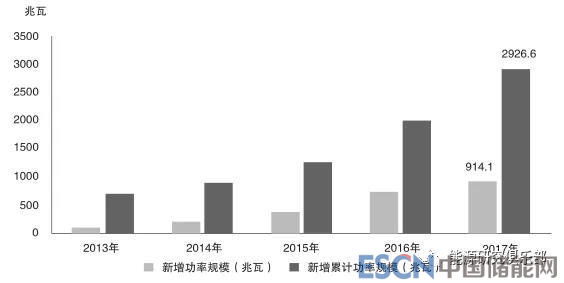 圖5 2013~2017年全球投運電化學儲能項目裝機情況(單位:兆瓦)