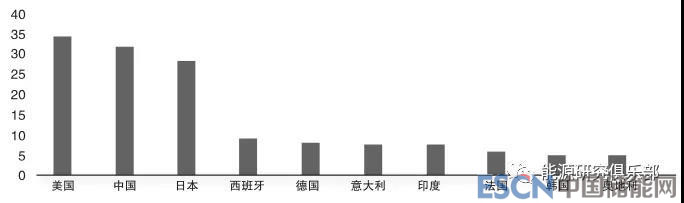 圖3 2018年全球累計運行儲能裝機TOP10國家(單位:吉瓦)