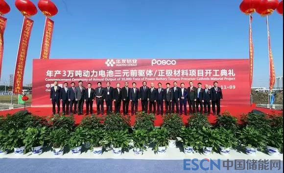 中國儲能網(wǎng)訊:11月9日,浦項新能源材料有限公司年產(chǎn)3萬噸動力電池三元前驅(qū)體、浦華新能源材料有限公司年產(chǎn)3萬噸動力電池正極材料項目同時舉行開工典禮。