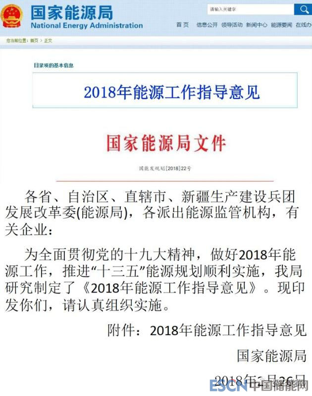國(guó)家能源局在2018年初的《2018年能源工作指導(dǎo)意見》中提出: