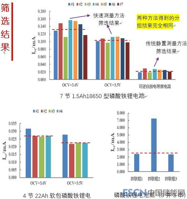 本項成果發(fā)明的鋰離子電池“漏電流”快速篩選技術,能夠在4小時內(nèi)完成對電池模組內(nèi)電池“漏電流”指標一致性的檢測,將電池按照自放電程度完成分組,快速剔除乏電池。