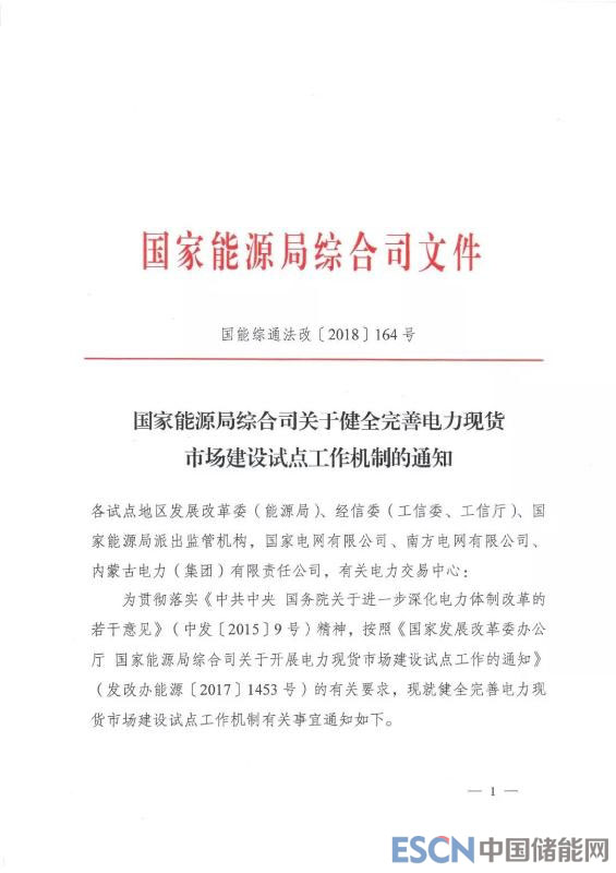 中國儲(chǔ)能網(wǎng)訊:近日國家能源局綜合司發(fā)布《關(guān)于健全完善電力現(xiàn)貨市場(chǎng)建設(shè)試點(diǎn)工作機(jī)制的通知》。要求加快廣東、蒙西、浙江、山西、山東、福建、四川、甘肅8個(gè)現(xiàn)貨試點(diǎn)建設(shè)。